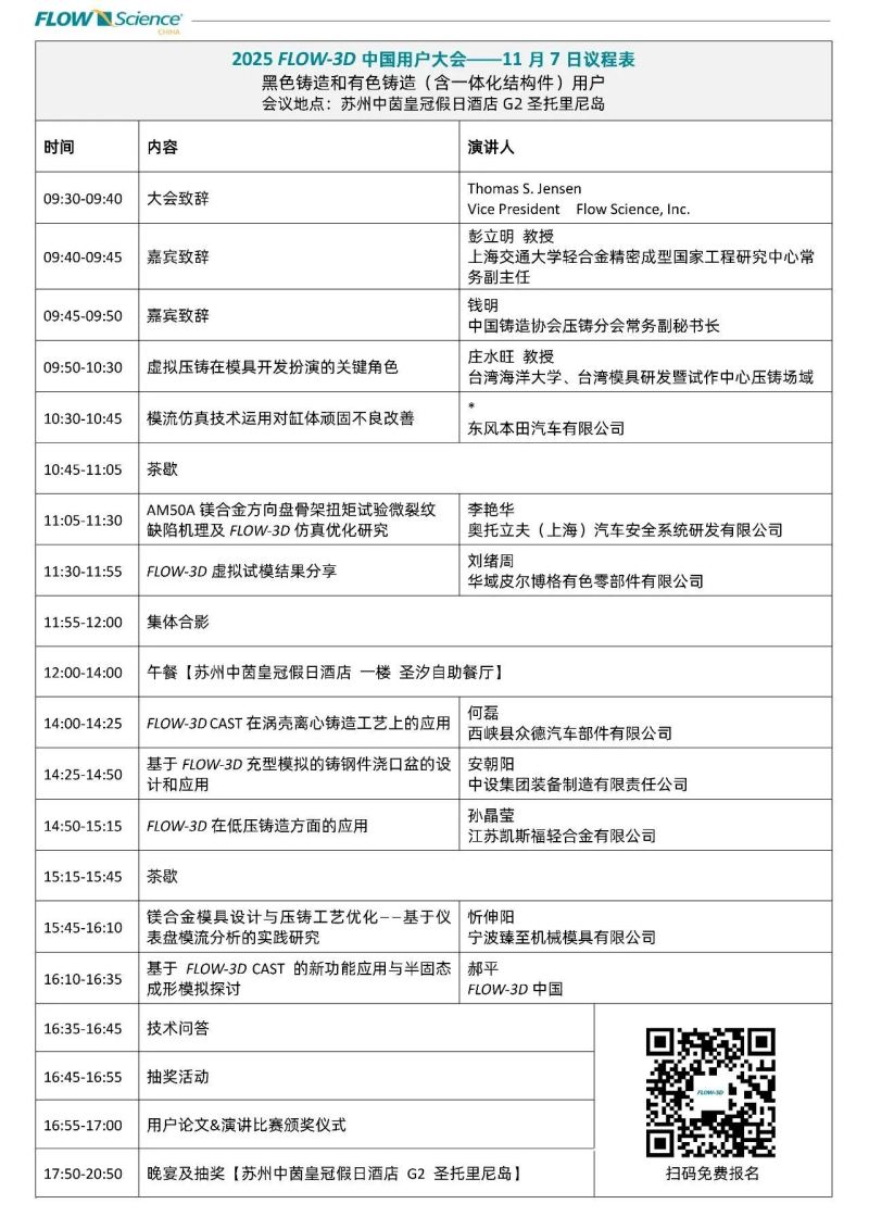 歡迎報名 | 2025 FLOW-3D CAST中國用戶大會議程公布